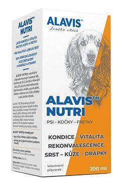 ALAVIS™ Nutri je veterinární přípravek obsahující lososový olej, vitaminy (A, D3, E, biotin) a minerální látky (Zn, Se) pro rekonvalescenci, lepší kondici a vitalitu a pro kvalitní, lesklou a zdravou srst, kůži a drápky u psů, koček a fretek.