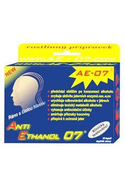 Anti Ethanol 07 je doplněk stravy, unikátní herbální přípravek ve formě kapslí. Obsahuje extrakty z rostlin tradiční asijské medicíny jako Vinnou révu (Vitis vinifera), Smuteň hořkou (Phyllatanthus amara) a plod Embliky, plody Datlovníku, nať z Měkýnu latnatého (Andrographis paniculata) a Čekanku obecnou.