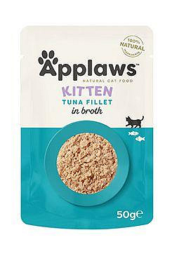 Applaws kapsička z přírodních surovin plná obsahuje 60% jemně drceného masa z tuňáka v kvalitním rybím vývaru. Applaws vyniká svou kvalitou a složením. Neobsahuje žádná dochucovadla, konzervační látky, barviva ani uměle přidané vitamíny. To nejlepší, co můžete dát svému koťátku!
