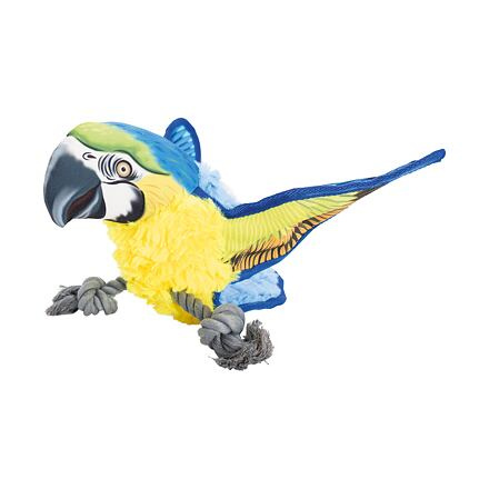 Ara Ararauna papagáj na lane HipHop Dog, 35 cm, robustná hračka pre psy, žltá/modrá