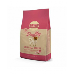 ARATON dog adult poultry 15 kg KOMPLETNÉ KRMIVO PRE DOSPELÝCH PSOV VŠETKÝCH PLEMIEN Zloženie: dehydrované hydinové mäso, kukurica, tritikale, mäsová múčka, pšeničné otruby, hydinový tuk, dužina cukrovej repy, minerálne látky. Doplnkové látky/1 kg: výživové doplnkové látky: vitamín A (3a672a) – 9000 IU, vitamín D3 (3a671) – 750 IU, vita