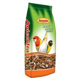 Kompletní gurmánské krmivo pro malé a střední papoušky. složení: slunečnice bílá, oves bezpluchý, proso žluté, safrol, proso bílé, proso červené, slunečnice žíhaná, lesknice, pohanka, extrudovaná pšenice a kukuřice, drcené mořské lastury, burské ořechy, jeřabiny, sušené jablka, konopné semeno, len. Analytická složka: hrubý protein 12,4