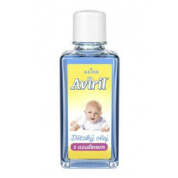 Aviril dětský olej s azulenem je určený pro kojence k ošetření a čištění pokožky. Obsahuje heřmánek, který má protikřečové a protizánětlivé účinky a zmírňuje kožní záněty. Také azulen má hojivé účinky. Aviril se používá v případě, že kůže je vysušená a svědí nebo je spálená od slunce. Olej chrání pokožku před zarudnutím, povětrnostními vlivy a před proleženinami. Vhodný je i pro dospělé.