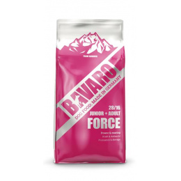 - BAVARO Junior/Adult Force 18 kg - Kompletné a výživné krmivo pre šteňatá od druhého mesiaca života aj pre dospelých psov. Výživa, energia a vitalita. Receptúra bez konzervačných látok a umelých aditív. Optimálna veľkosť granúl. - Výživné krmivo pre šteňatá od druhého mesiaca života. Ľahko stráviteľné krmivo s delikátnou a zároveň jemnou chuťou. Receptúra bez konzervačných látok, umelých aróm a farbív. Cenné živiny poskytujú Vášmu psovi podporu pre zdravý rast a vývoj a posilňujú imunitný systém. Chutné granule dodávajú energiu a vitalitu. Zároveň sa starajú o kĺby a rast zdravej srsti. Vyvážený podiel vitamínov, minerálov a stopových prvkov. Vláknina prirodzeným spôsobom stimuluje črevnú mikroflóru.