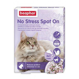 Beaphar No Stress Spot On je vhodný pro všechna plemena a věkové kategorie koček. Snižuje stres u koček a udržuje je v klidu díky zklidňujícímu účinku extraktu kozlíku lékařského, který je obsažen v mikrokapslích. Ty fungují na principu pomalého uvollňování a dlouhodobého účinku. Používá se v případě nadměrného mňoukání nebo prskání v důsledku odloučení, návštěvy veterináře, při cestování, bouřce či v případě destruktivního nebo nežádoucího územního chování.