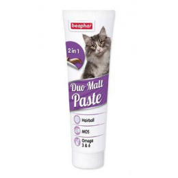 Pasta pro kočky, která přirozenou cestou čistí trávicí trakt koček a koťat od chomáčků chlupů a formuje zdravou střevní mikroflóru. Obsahuje dvě pasty v jedné tubě. Malt pasta (tmavě hnědá) pomáhá přirozenému průchodu nahromaděných chomáčků trávicím traktem, předchází usazeninám v žaludku. Obsahuje karamel, který posiluje účinek pasty a přidává ji na chuti. Kondicionér pasta (světle hnědá) obsahuje BIO MOS (Mannan Oligosacharid) – formuje zdravou střevní mikroflóru. Používáním pasty bude srst Vaší kočky silná, krásná a zdravá.
