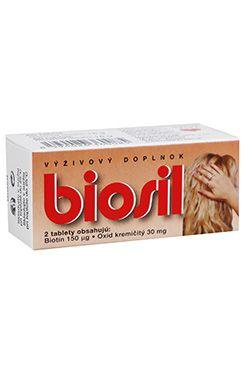 Biosil je doplněk stravy s obsahem biotinu (vitaminu H) a oxidu křemičitého. Biotin přispívá k udržování normálního stavu vlasů, pokožky a sliznic.