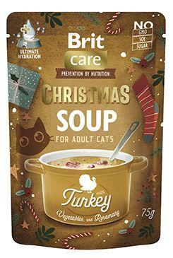 Vánoční řada Brit Care Christmas Soup pro kočky byla vytvořena jako limitovaná edice, která spojuje kvalitní maso, zeleninu a bylinky s vysokým obsahem vlhkosti pro podporu hydratace. Receptury jsou obohaceny o taurin, L-methionin, prebiotika a probiotika, jež přispívají k dobrému trávení, imunitě a zdraví močových cest. Díky šetrnému složení bez obilovin, sóji, GMO a přidaného cukru jsou polévky vhodné i pro citlivé a vybíravé kočky a představují chutný způsob, jak zpestřit jejich každodenní jídelníček.