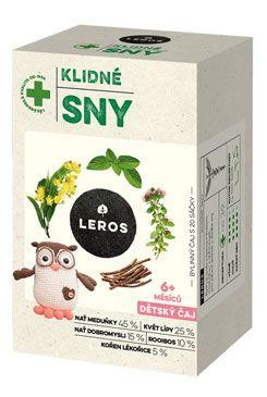 Leros Dětský čaj Klidné sny je bylinná směs s lipovým květem, meduňkou a dobromyslí. Vůni čaje kraluje svěží meduňka se svým jemným citronovým přídechem, která se krásně snoubí s vůní lipových květů. Příjemnou nasládlou chuť dodává čaji rooibos, kořen lékořice ji pak jemně doplňuje svou typickou sladce anýzovou příchutí. Čajová směs je vhodná k doplnění pitného režimu zvláště v podvečerním čase.