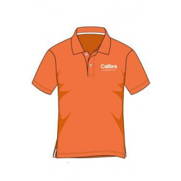 Pánské polo tričko na knoflíky s krátkým rukávem a límečkem. Na přední straně logo Calibra, záda jsou ozdobená piktogramy z korporátního vizuálu.