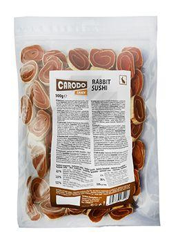 Králičí sushi je originální kombinací králičího masa (66,5 %) a rybí tresky (13 %) formované do tvaru rolek. Tato pochoutka nabízí vysokou chutnost a je vhodná i pro vybíravé psy od 6 měsíců věku.