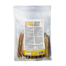 Tento sendvič představuje atraktivní spojení kuřecího masa (66,5 %) a chutné tresky (13 %). Pamlsek pro psy je díky své textuře a složení s kukuřičným škrobem lehce stravitelný a velmi voňavý.