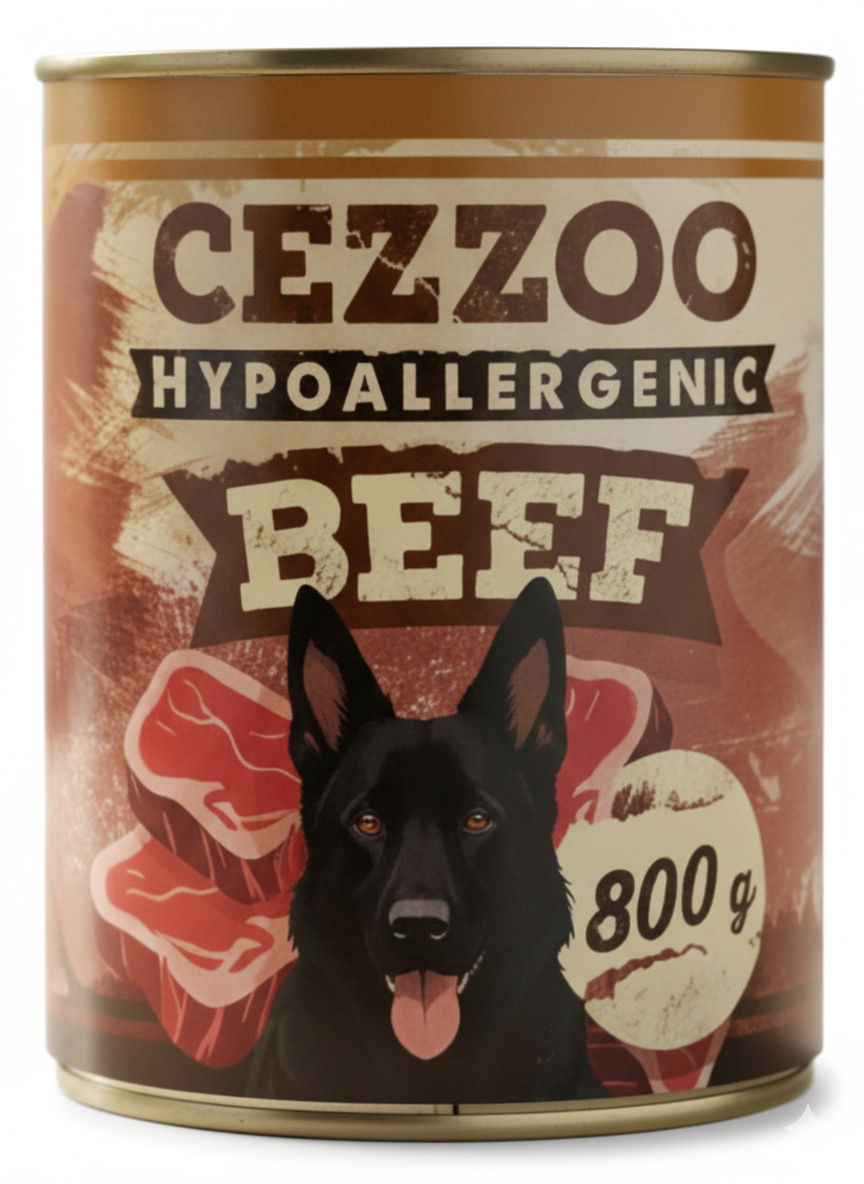CEZZOO Hypoallergenic Beef 800g je kompletné hypoalergénne krmivo pre dospelých psov všetkých plemien s citlivým zažívaním. Obsahuje vysoký podiel kvalitného hovädzieho mäsa a drobov, ktoré sú ľahko stráviteľné a šetrné k žalúdku.