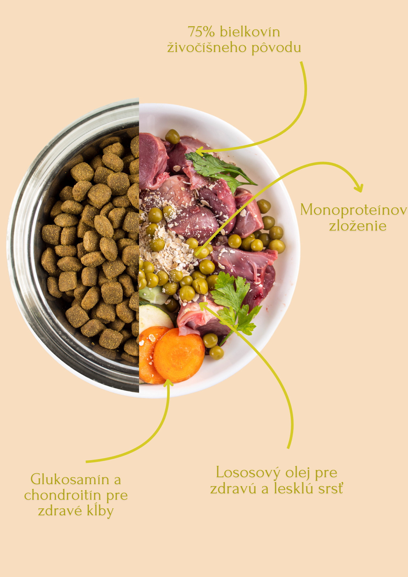 - Kvalitné mäso: Jahňacie mäso je ľahko stráviteľné a bohaté na bielkoviny.