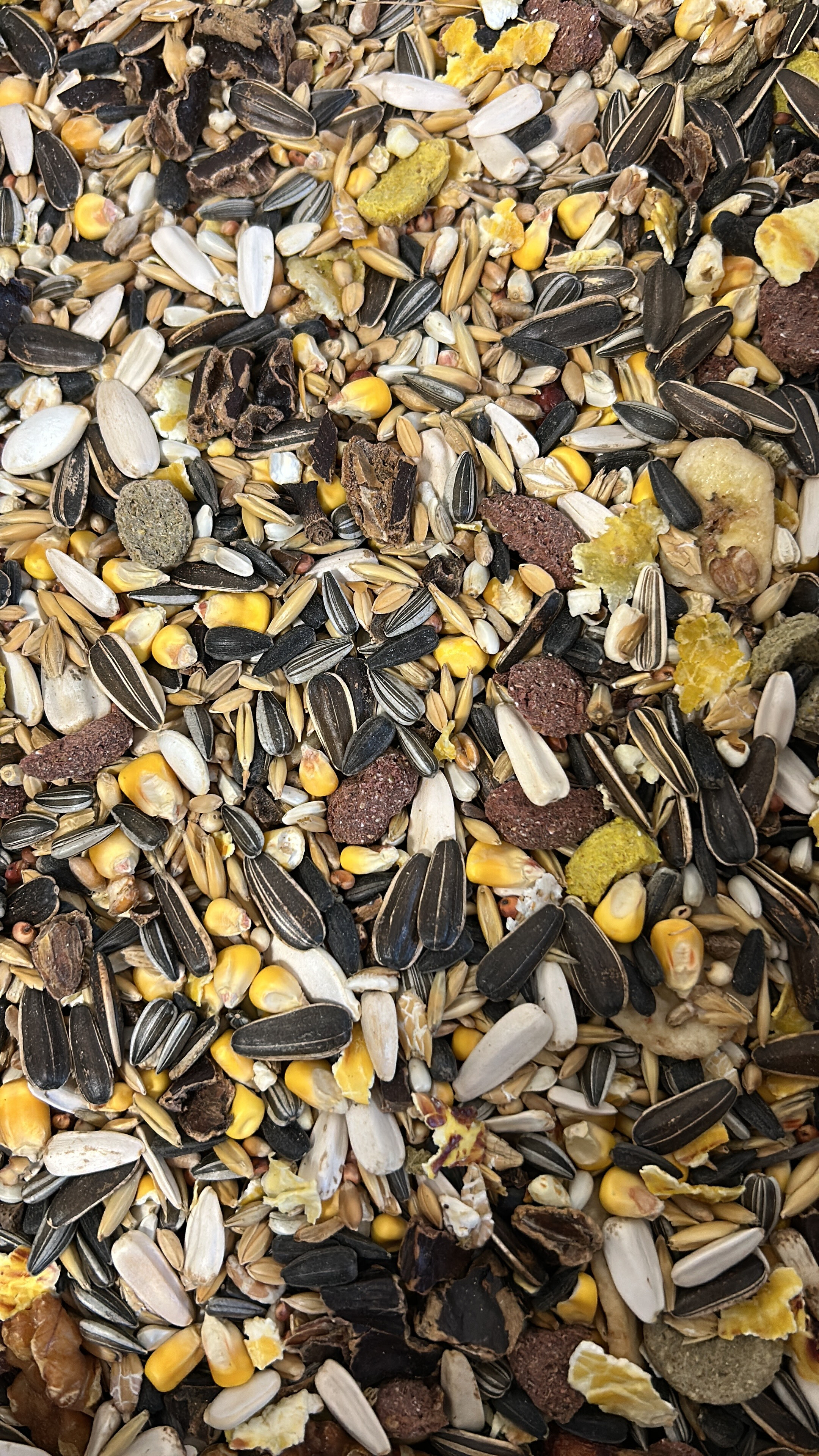 Naša receptúra kombinuje kvalitné semená, obilniny, zeleninu a ovocie, čím zabezpečuje vyvážený pomer energie, bielkovín, tukov, vitamínov a minerálov, ktoré sú nevyhnutné pre spokojný a aktívny život vášho opereného priateľa.