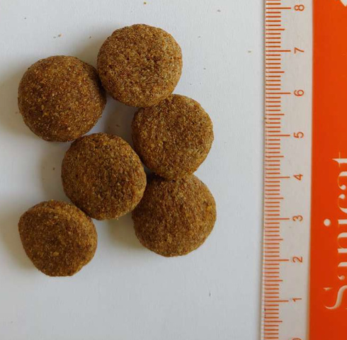 Analytické zložky: hrubá bielkovina – 24 %, hrubá vláknina – 2,2 %, hrubý tuk – 11 %, hrubý popol – 7,2 %, vlhkosť – 9 %, vápnik – 1,2 %, fosfor – 0,9 %, omega-3-mastné kyseliny – 0,22 %, omega-6-mastné kyseliny – 1,86%