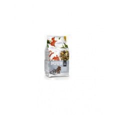 Kompletní krmivo pro činčily a osmáky, speciálně navrženo, aby bylo stejně výživné jako přirozená strava v přírodě. Obsahuje přírodní vitamíny. Složení: vedlejší výrobky, rostliného původu, obiloviny, zelenina, ovoce, minerální látky, oleje a tuky. Analytické složky: hrubý protein 13%, hrubá vláknina 14%, hrubé oleje a tuky 3% K