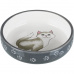 Keramická miska vyvýšená s motívom mačky, ergonomický tvar, 0,15 l / 13 cm, šalvia/biela