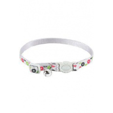Nastavitelný nylonový obojek (17-30cm) je vybaven kovovou rolničkou a bezpečnostní pojistkou.