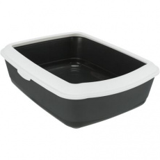 kočičí WC s vysokým okraje vysoký okraj toalety zamezí vyhrabávání steliva snadná montáž na zacvaknutí materiál: plast rozměry: 48 × 30 × 58 cm barva: šedá