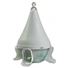 krmítko pro venkovní ptactvo, domeček o průměru 65 cm vnitřní zabudované silo udržuje krmivo čisté a suché stabilní díky trojnožce rozměry: ø 65 x 34 cm / 1.40 m barva: bílá