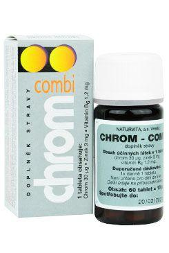 Chrom combi je doplněk stravy obsahující chrom, zinek a vitamín B6 (pyridoxin). Vhodný k užívání pro diabetiky.
