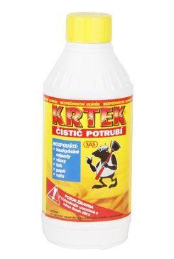 Čistič odpadů Krtek čistí potrubí kde rozpouští kuchyňské odpady, vlasy, tuky, papír, vatu. Je velice agresivní. Nelze ho použít na hliníkové potrubí. Má bezpečnostní víčko.