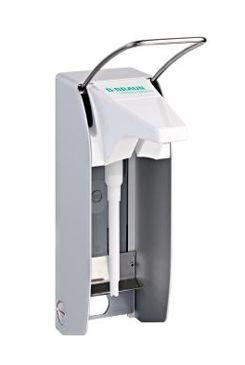 Profesionální pomůcky umožňující dávkování dezinfekčních prostředků, mycích emulzí a tekutých krémů bez dotyku prsty, ovládání páky loktem.