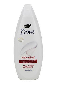 Dove sprchový gel Silky Velvet s klasickou jemnou pudrovou vůní jemně čistí pro okamžitě jemnější a hladší pokožku.