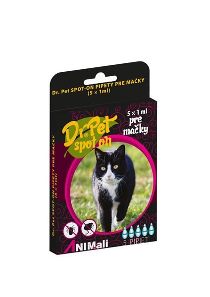 Dr.Pet spot-on pipety pre mačky 5 x 1 ml (spot-on odpudzovač kliešťov a bĺch pre mačky)