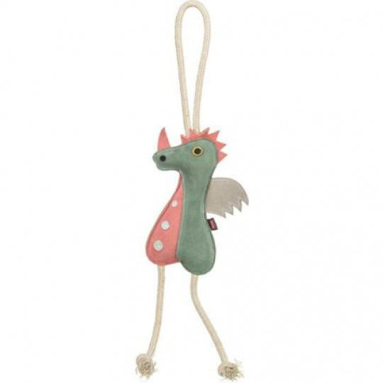 Dragon - dráčik na lane, 55 cm, hračka pre psy, 100% pravá koža/lano, zelená
