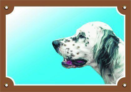 Farebná ceduľka Pozor pes, Anglický seter biely
