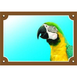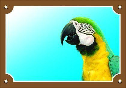 Farebná ceduľka Pozor pes, ARA Ararauna