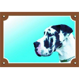 Farebná ceduľka Pozor pes, Doga harlekýn