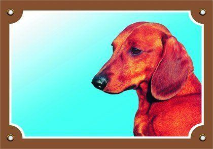 Farebná ceduľka Pozor pes, Jazvečík hladkosrstý
