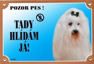 Farebná ceduľka Pozor pes, Maltézsky pinč