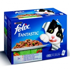 Nestlé FELIX Tasty shreds cat Multipack kura&hovädzie&kačica&morka v šťave kapsička 44x80 g