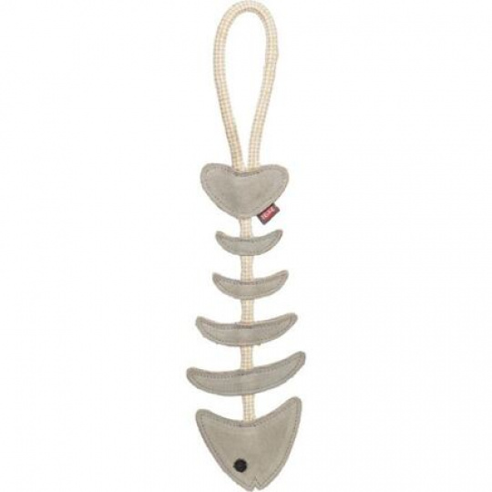 FishBone - rybia kosť na lane, 43 cm, hračka pre psy, 100% pravá koža/lano, sivá