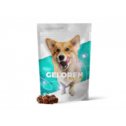 Žvýkací želé Geloren dog obsahuje aktivní látky potřebné pro správné fungování kloubů, vazů a šlach. Kyselina hyaluronová - Nejdůležitější složka kloubní tekutiny. Promazává klouby, tlumí nárazy a napomáhá zlepšovat stav při bolestech a zánětech kloubů. Chondroitin sulfát - Důležitá součást kloubní chrupavky a synoviální tekutiny. Zaručuje pružnost, pevnost a odolnost chrupavky. Hydrolyzovaný kolagen - Vysoce vstřebatelná forma kolagenu. Kolagen je důležitý pro pevnost šlach a celkové zpevnění pohybového aparátu. Kolagen je jednou z hlavních stavebních složek chrupavek, šlach i vazů a podporuje jejich regeneraci. Želatina - Látka bílkovinné povahy v dobře stravitelné formě poskytující základní stavební součásti pro tvorbu kolagenu. Kolagen je důležitý pro zdravé šlachy, vazy a chrupavky.