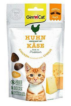 Pamlsky Crunchy Snacks pro kočky, neodolatelně lahodná kombinace kuřecího masa a lahodného sýra.