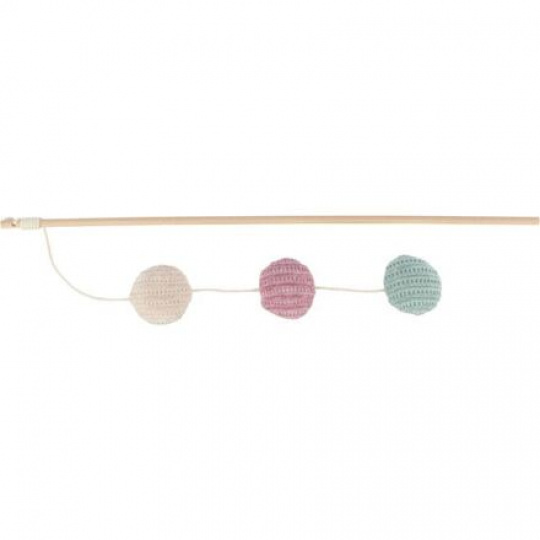 Hrací prút s 3 loptičkami, catnip, drevo/látka, 40 cm