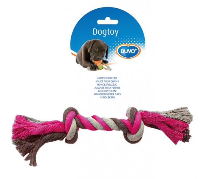 Hračka DUVO+ Lano s 2 uzlami na ťahanie ružovo-šedo-sivé Medium 26 cm