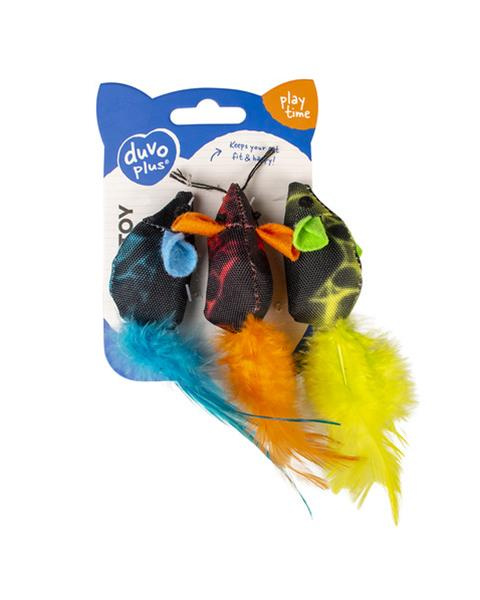 Hračka DUVO + myš rýchla s pestrofarebným perím 19x5,5x3cm
