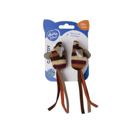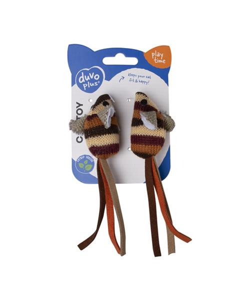 Hračka DUVO + myši pletené hnedé 13,5x4,5x2,5cm