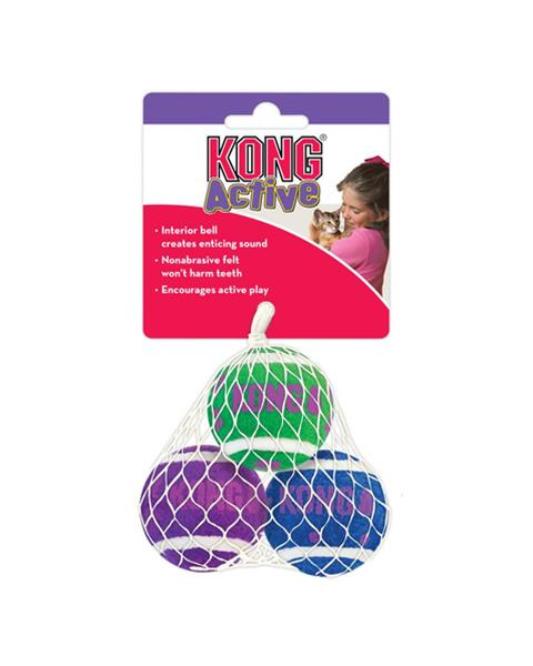Hračka Kong Cat Active Loptičky tenisové so zvončekom, guma vulkanizovaná (3 bal.)