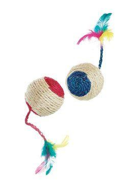 Hračka pro kočky, barevný míček se zajímavým péřovým koncem, který poutá kočočí pozornost. V několika různých barvách.