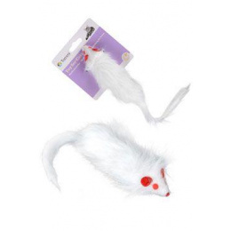 Hračka mačka Myš biela chlpatá 15cm