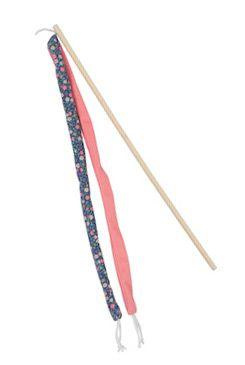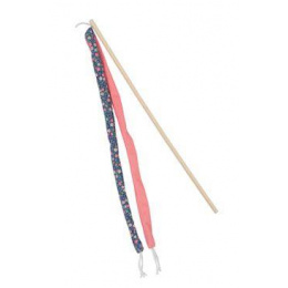 Hračka pro kočky - bambusová udice se stuhami a šantou kokočičí, květinový vzor.