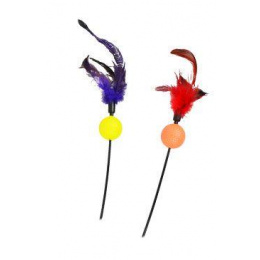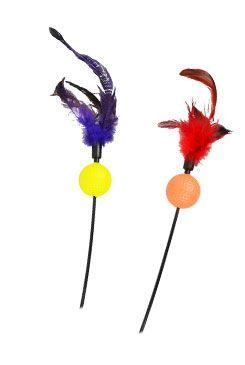 Oblíbená hračka pro kočky - mávatko s peřím a míčkem. Hra a zábava bez bolestivých škrabanců´.