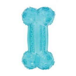Hračka pes BONE TPR POP kosť 14cm tyrkysová Zolux